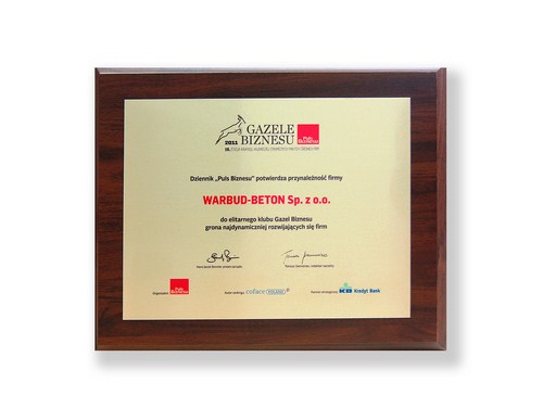 Orzeł Mazowieckiego Biznesu 2008 - starania spółki zostały docenione w konkursie „Mazowiecka Firma Roku”. Warbud Beton zdobył III miejsce i brązową statuetkę za oferowanie usług i produktów na najwyższym poziomie.